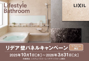 ただいま LIXIL システムバスルーム「リデア」 を対象に、
